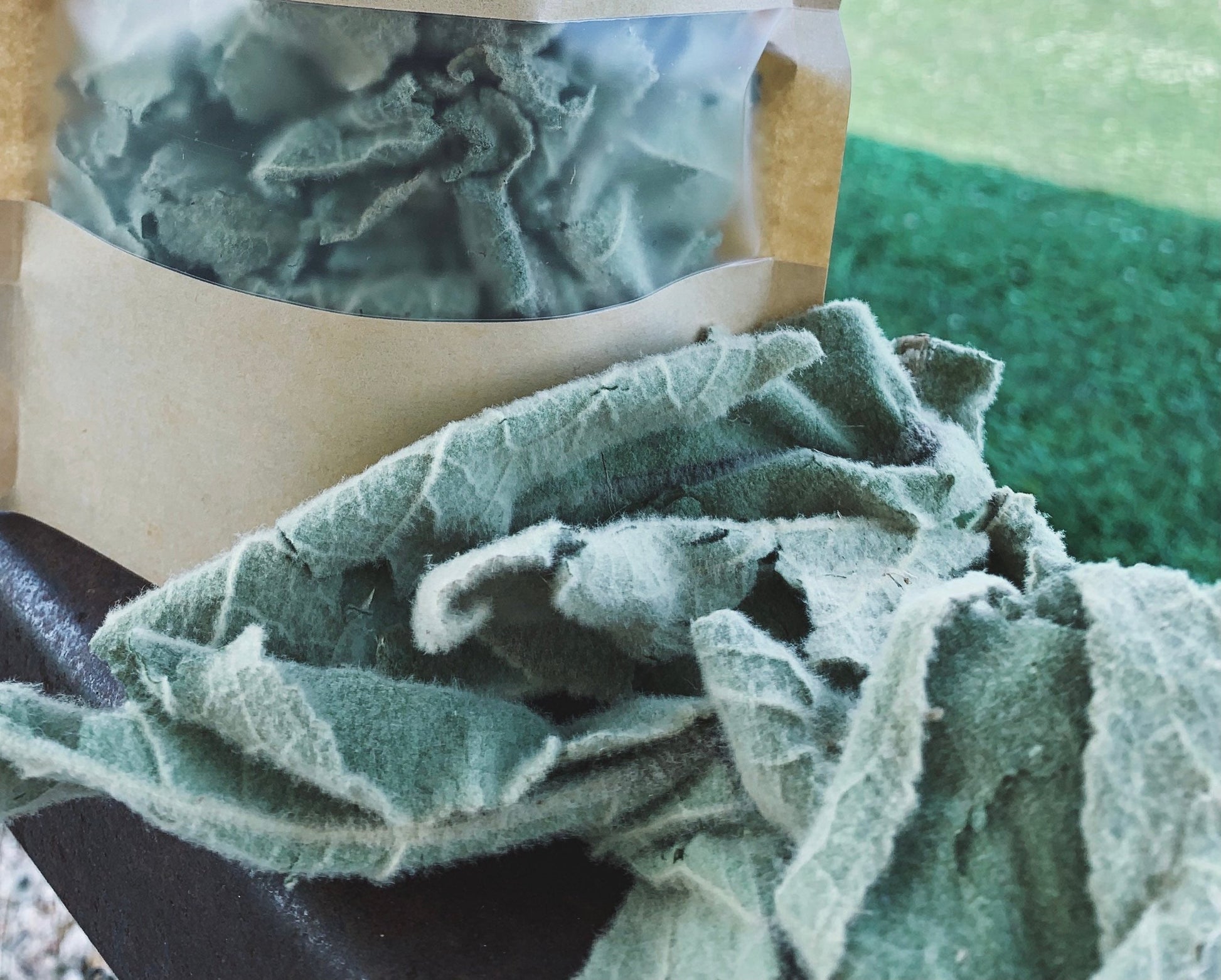 Dried mullein leaves•Verbascum thapsus•Grown organically and wild harvested on our farm•