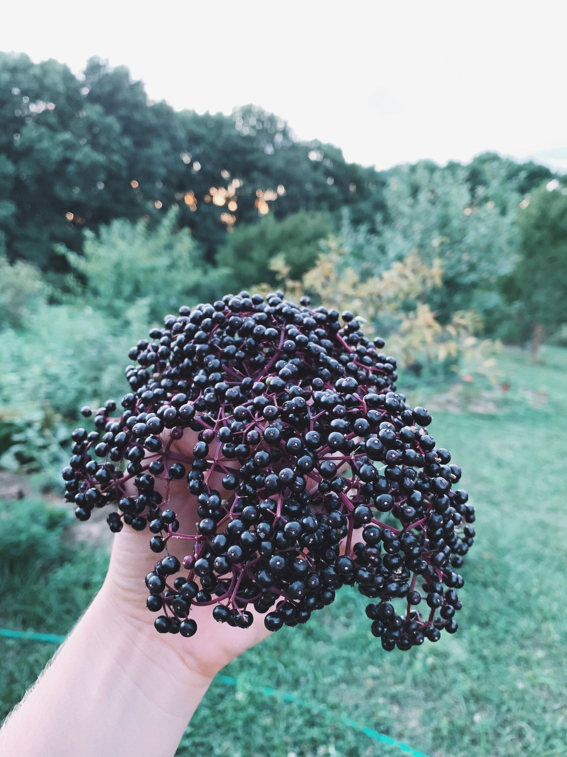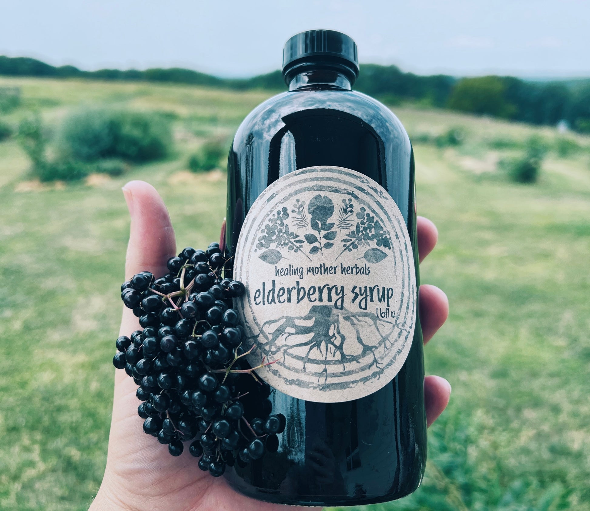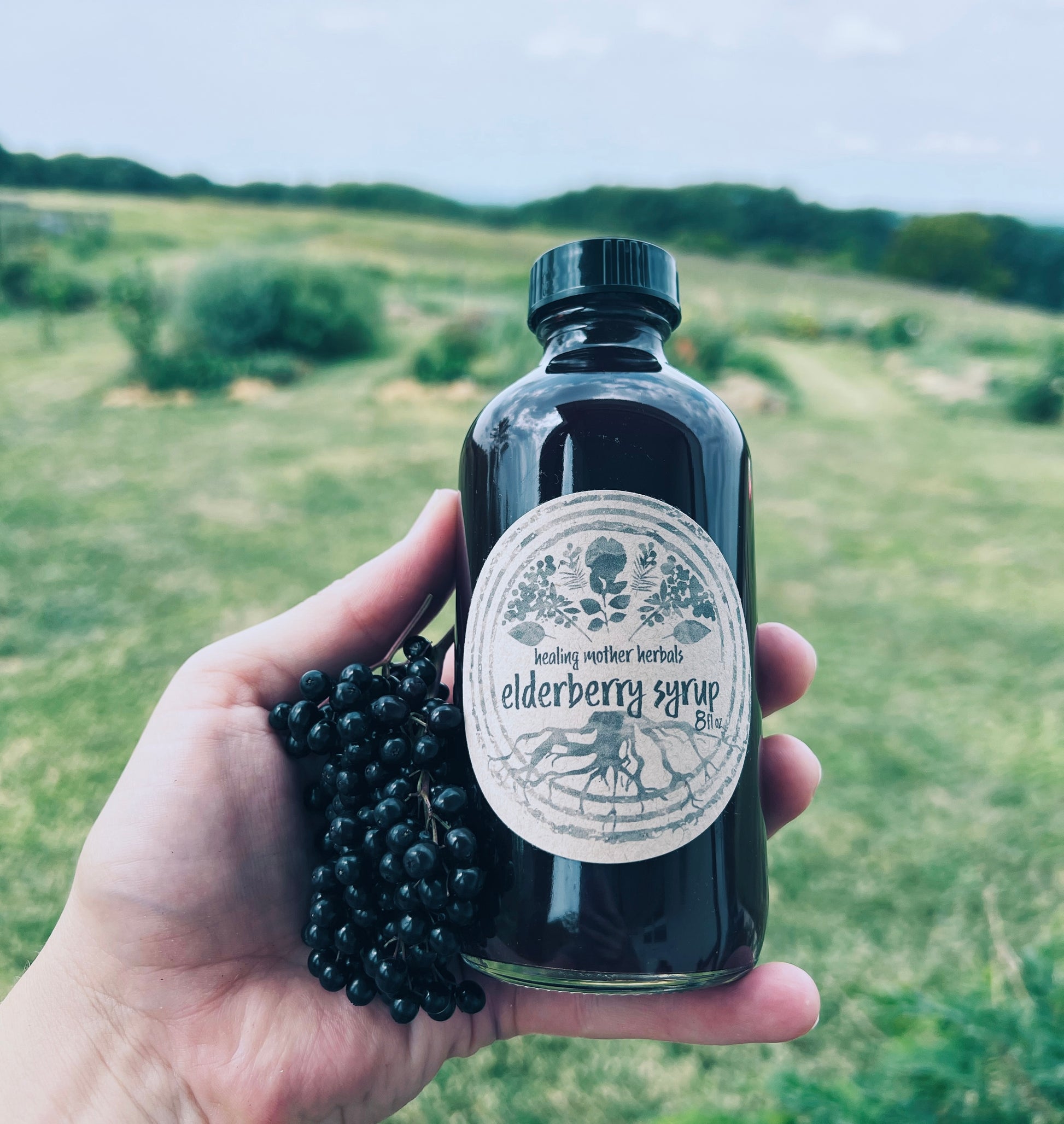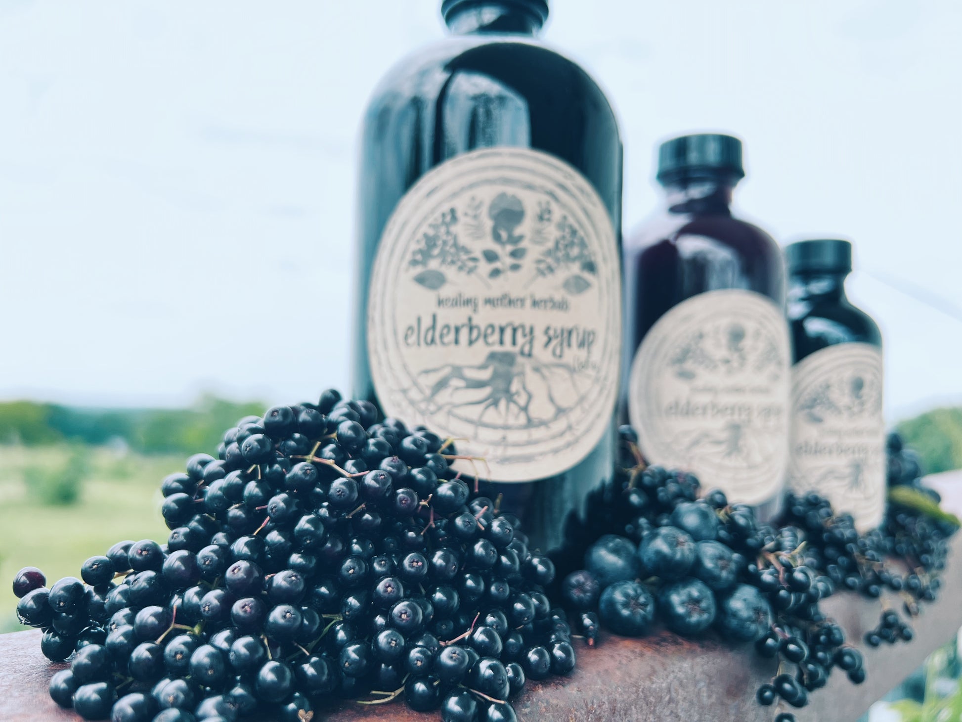 Elderberry and Aronia Berry Immunity Elixir•Not your average syrup•This syrup is made with fresh berries grown organically right on our farm•These immunity boosting berries are infused in vinegar and honey for several weeks and then added to an herb brew with all of the amazing essentials to keep you and your family healthy all year round•Gear up for cold and flu season in the healthiest way with our tangy and sweet Purple Syrup•