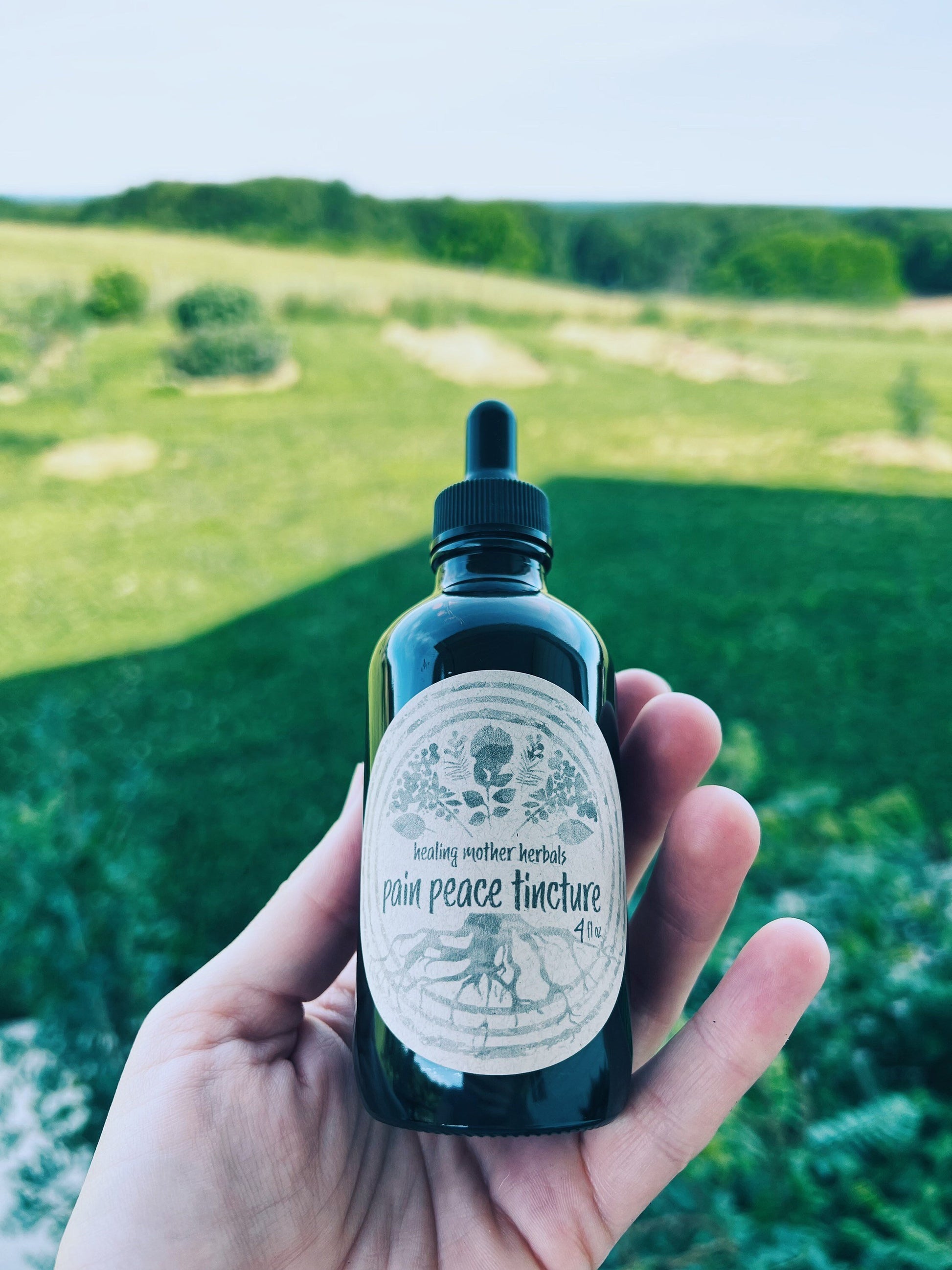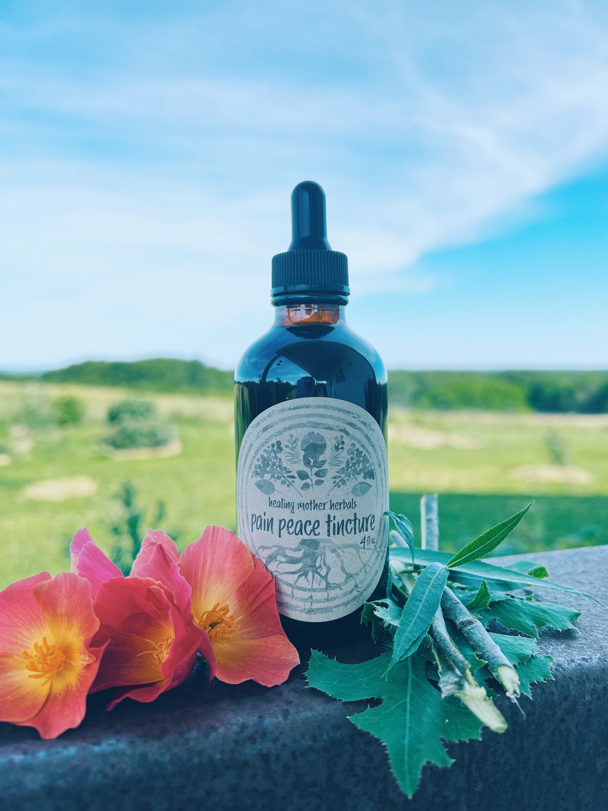 The perfect blend of plants to relieve an array of body pain•This tincture works wonderful for head-aches(a great add on with our headache healer tincture), nerve pain, sciatic pain, achey back pain, muscle tension and pain, menstrual cramps and body aches•