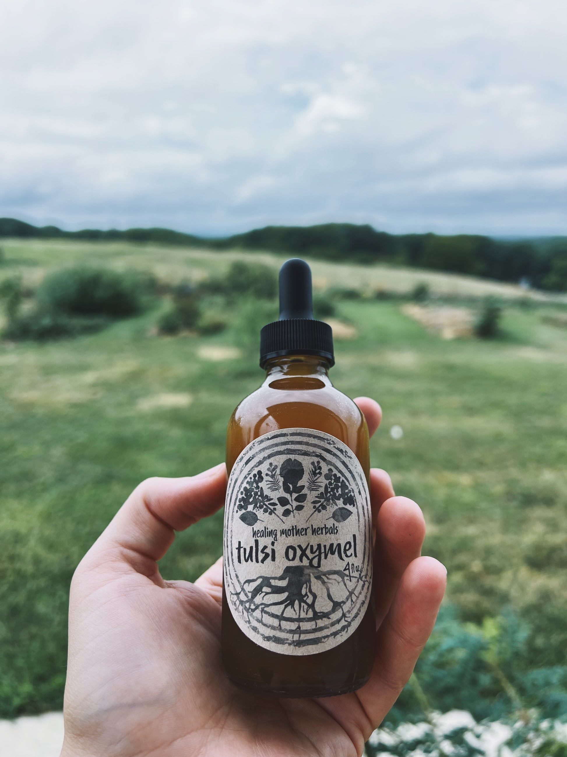 INGREDIENTS: fresh tulsi leaves and flowers, apple cider vinegar, local raw honey